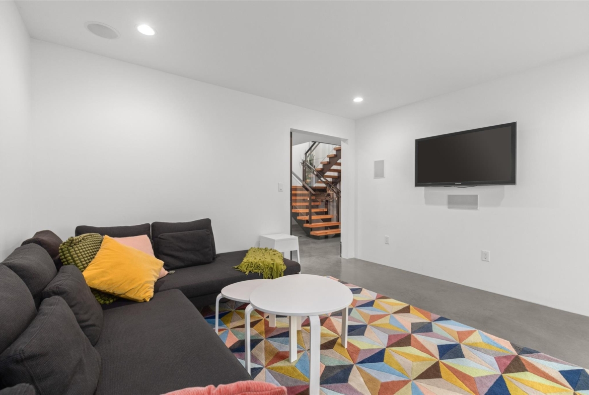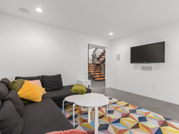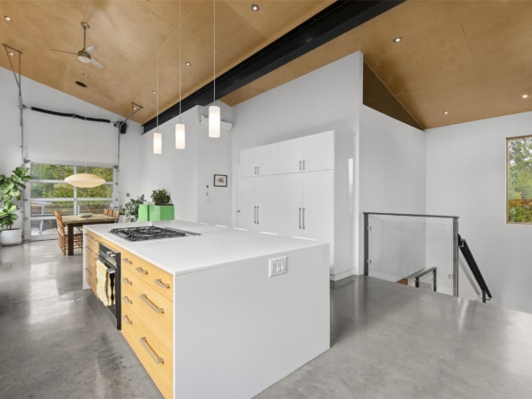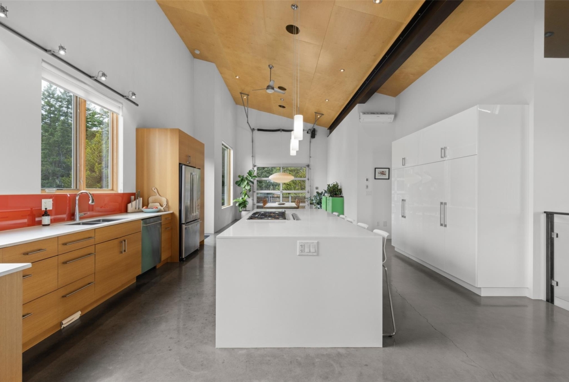 and expansive windows that flood the space with natural light and frame the stunning