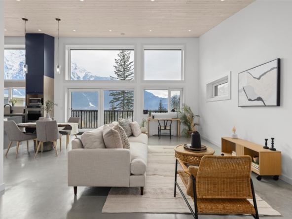 Newly constructed in the coveted Sunstone community, this refined modern home blends architectural simplicity with elevated design and sweeping mountain views. Clean lines and polished concrete floors anchor the open-concept living space, where a well appointed kitchen showcases two-tone custom cabinetry, stainless steel appliances, and effortless flow for both everyday living and entertaining. Bright, generously sized bedrooms feature custom built-ins, creating serene and highly functional retreats. Above the garage, a fully self-contained carriage house suite offers exceptional flexibility, ideal for premium rental income, visiting guests, or a sophisticated private office. All just minutes from Pemberton Village and an easy drive to Whistler, this is contemporary mountain living at its finest.