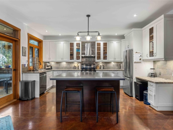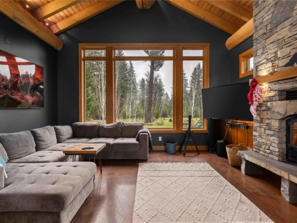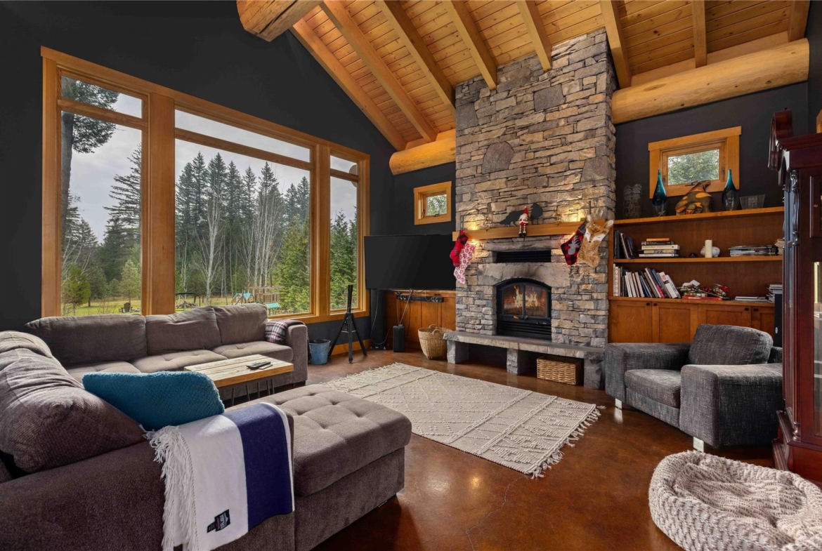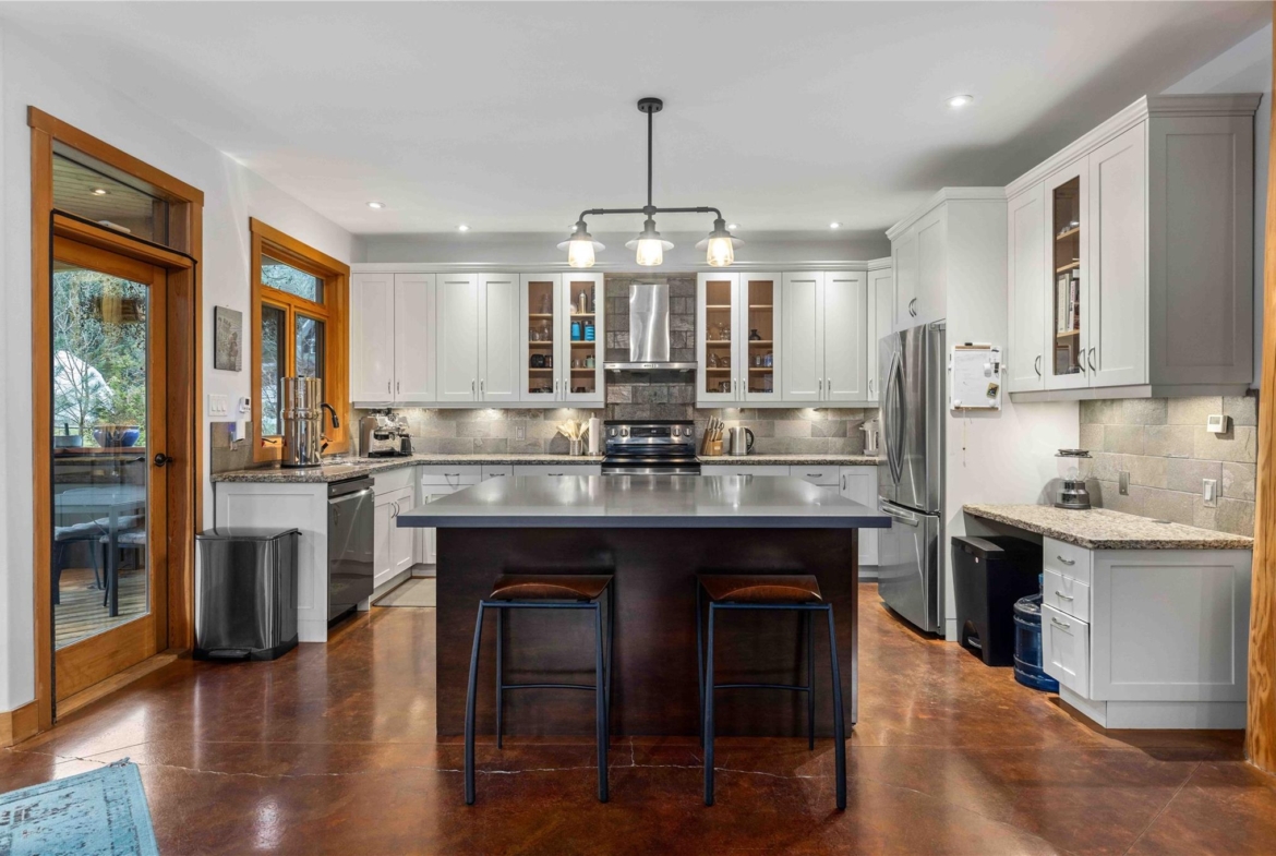 Surround yourself with amazing views, fresh air, great neighbors and access to the most beautiful part of Canada just out your front door. This custom home was finished in 2007 and features exposed wooden beams, expansive windows, polished heated concrete floors and a thoughtful layout. The kitchen is perfect for entertaining and adjacent to a partially covered deck where you can soak in West-facing sunset views. This estate home is a must