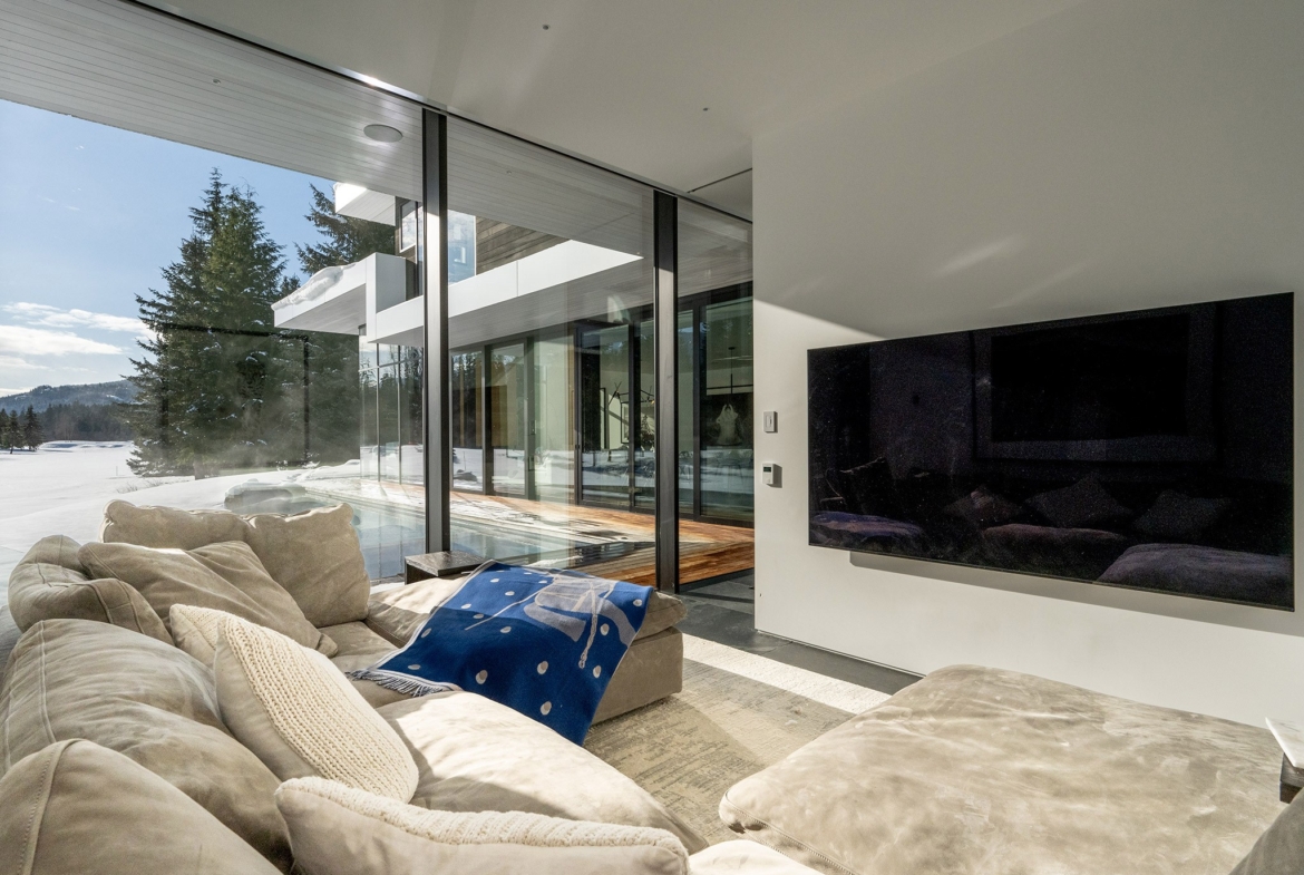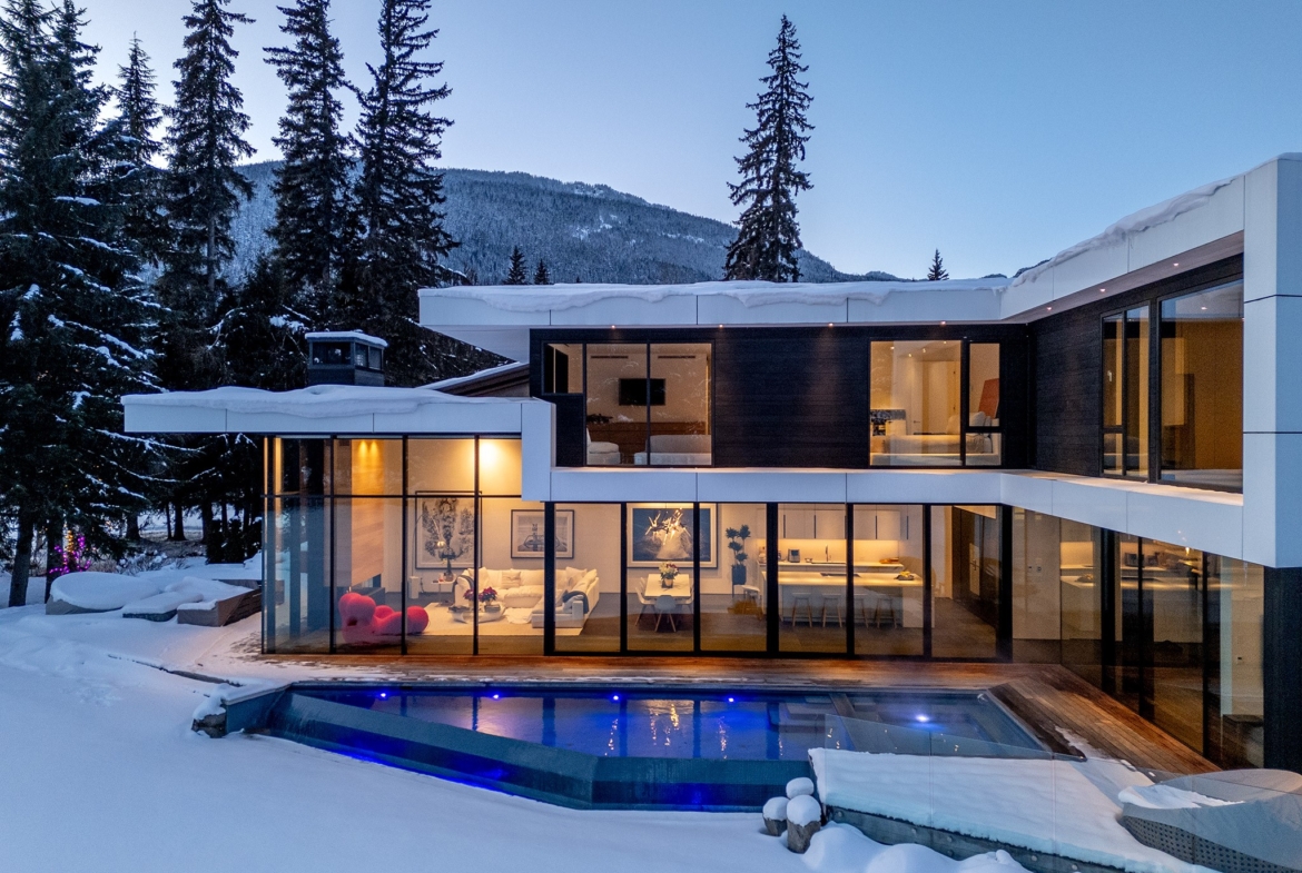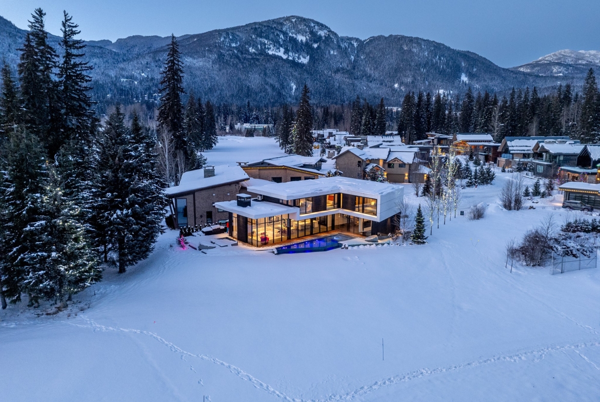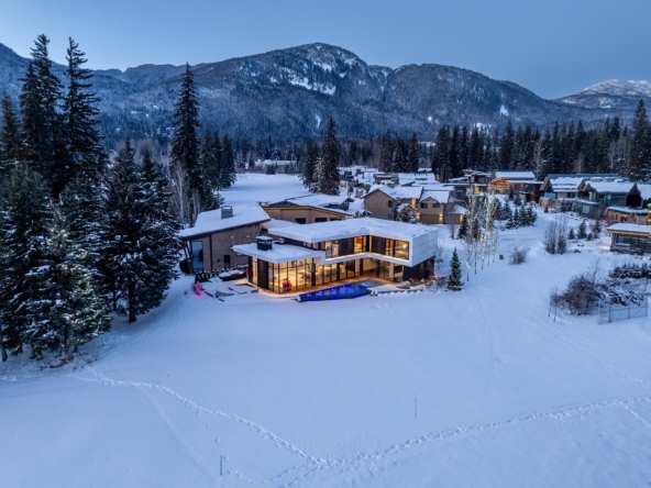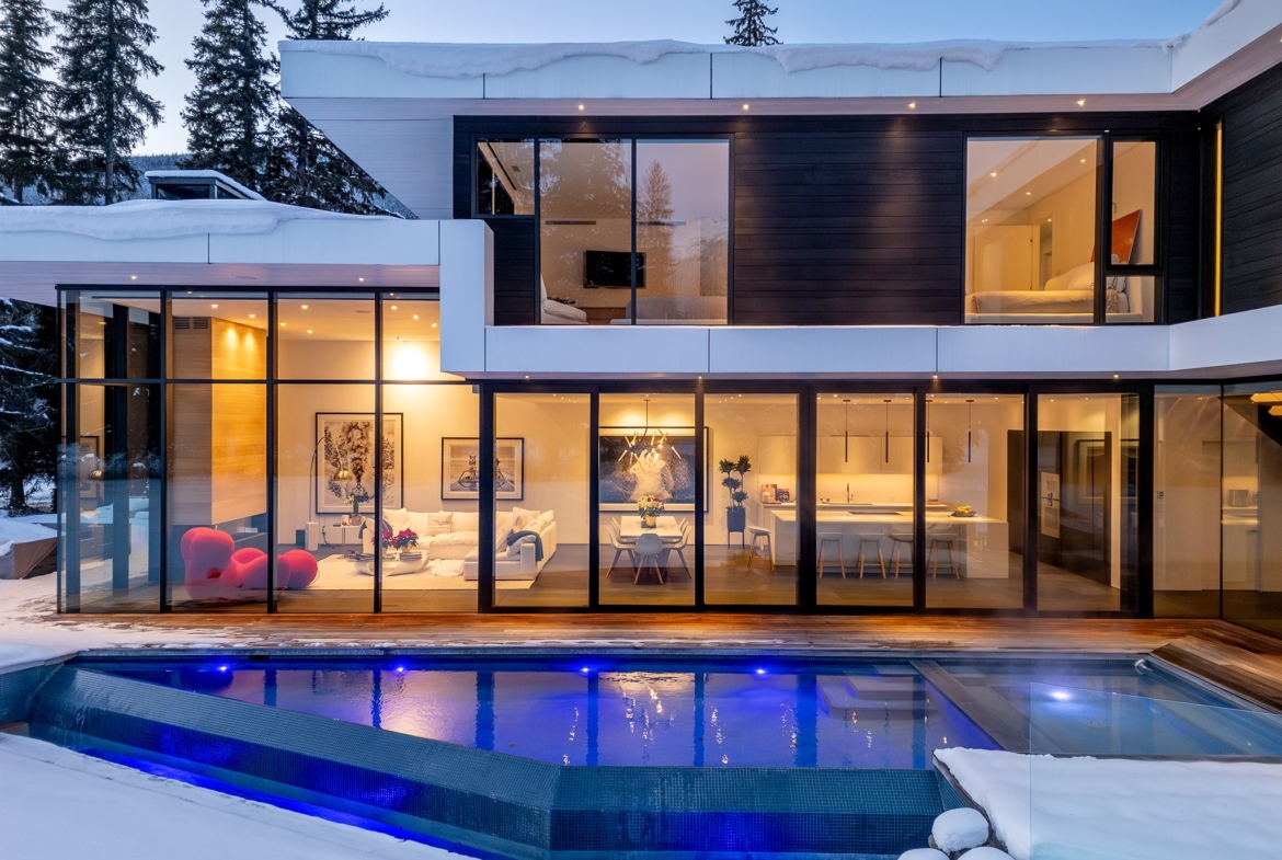 8080 Cypress Place; a breathtaking mid century modern mountain escape that is perfectly positioned on the 3rd hole of Nicklaus North Golf Course – one of North America’s great championship golf courses. Incomparable views are visible throughout. You will never tire of watching the seasons change whether it be from the vast living room or the grand primary suite courtesy of the unbelievable glass that surrounds this luxury home. A gourmet solid oak kitchen featuring a Gaggenau steam oven + 2 dishwashers, Wolf Range and ample storage is an incredible gathering space that lends this to be the perfect home for entertaining groups of all sizes. Walk out from the living room, dining room or kitchen onto the expansive teak deck where you can cool off in your very own pool during the summer months, warm up after a thrilling day on the slopes in the hot tub, or enjoy your favorite glass of wine around the firepit after enjoying a delicious dinner prepared on the outdoor BBQ. All day sun can be enjoyed year round from BOTH the interior and exterior living space. Each bedroom has its own lavish ensuite bathroom featuring Dornbracht fixtures and you will undoubtedly appreciate the handmade wool carpet featured in each bedroom. Noteworthy features that must be mentioned include Vistosi lights in the welcoming Foyer, automated blinds throughout the entire property, full security system – including 4 cameras, 1 inch slate flooring and a wonderful pond just outside the front door. This sensational one of a kind property cannot be duplicated. Absolute quality, spectacular design execution paired with a breathtaking location make 8080 Cypress Place the perfect retreat to come home to, unwind and immerse yourself in the breathtaking surroundings whether it be as your full time home or mountain haven.