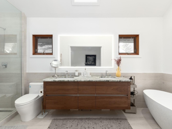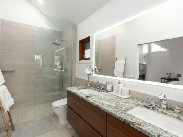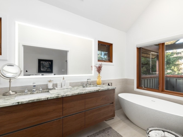 The large open dining and living area is perfect for hosting family and friends. You will love the 2 spacious bedrooms with updated ensuites, a main-level primary suite that flows onto a large private deck, a 4th bedroom or office & lofted area. A 1 bed suite can be incorporated into the home or used as a rental if desired.