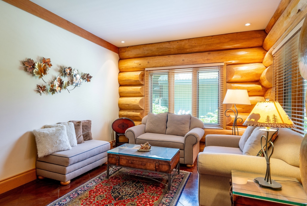 Wake up to the stillness of the mountains in this classic Whistler log chalet, perfectly positioned on a quiet street in the coveted Nicklaus North community. Framed by evergreens and fairways, the home celebrates authentic alpine architecture—vaulted ceilings, hand-crafted log beams, and warm natural textures throughout. Step outside to your private patio overlooking the Nicklaus North Golf Course, or unwind in the sauna after a day on the slopes. With a flexible floor plan offering space for family, fitness, and a self-contained suite for guests or revenue, this is a home that adapts to every season of Whistler life.