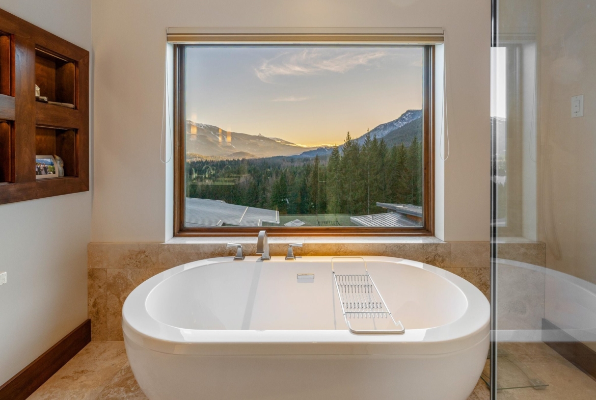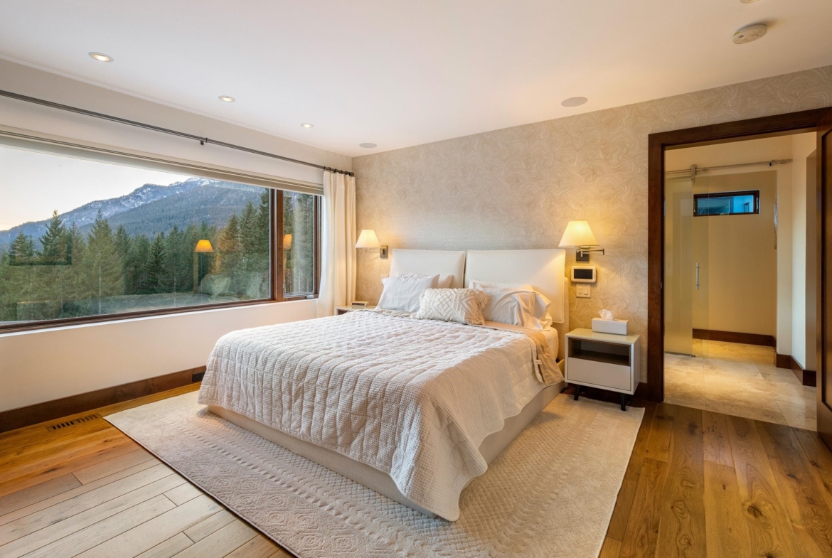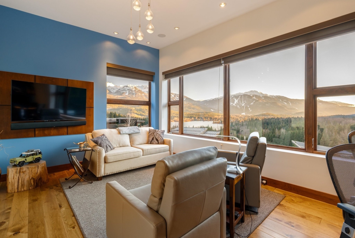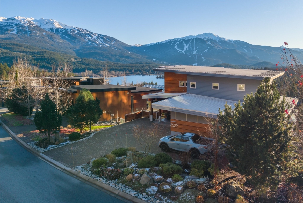 Perched in the prestigious Baxter Creek neighbourhood, 8529 Ashleigh McIvor Drive offers all-day sun and breathtaking panoramic views of Green Lake and the surrounding mountains. This 3,936 sq ft modern mountain chalet features 4 bedrooms, 4.5 bathrooms, and a refined blend of natural materials and thoughtful design. Rich custom wood finishes, radiant heated tile floors, and expansive windows define the open-concept living space, which flows seamlessly to a sun-drenched deck perfect for sunset moments. The chef’s kitchen includes premium appliances, granite counters, and a large island perfect for entertaining. The luxurious primary suite captures stunning views and includes a spa-inspired 5-piece ensuite. The lower level features two bedrooms, a family room, gym, and patio-level hot tub. A legal 1-bedroom suite offers added flexibility. Located just minutes from Whistler Village, this is a rare opportunity to own a true lifestyle property in one of Whistler’s most sought-after neighbourhoods.
