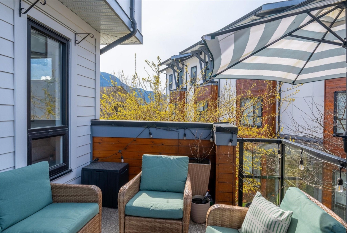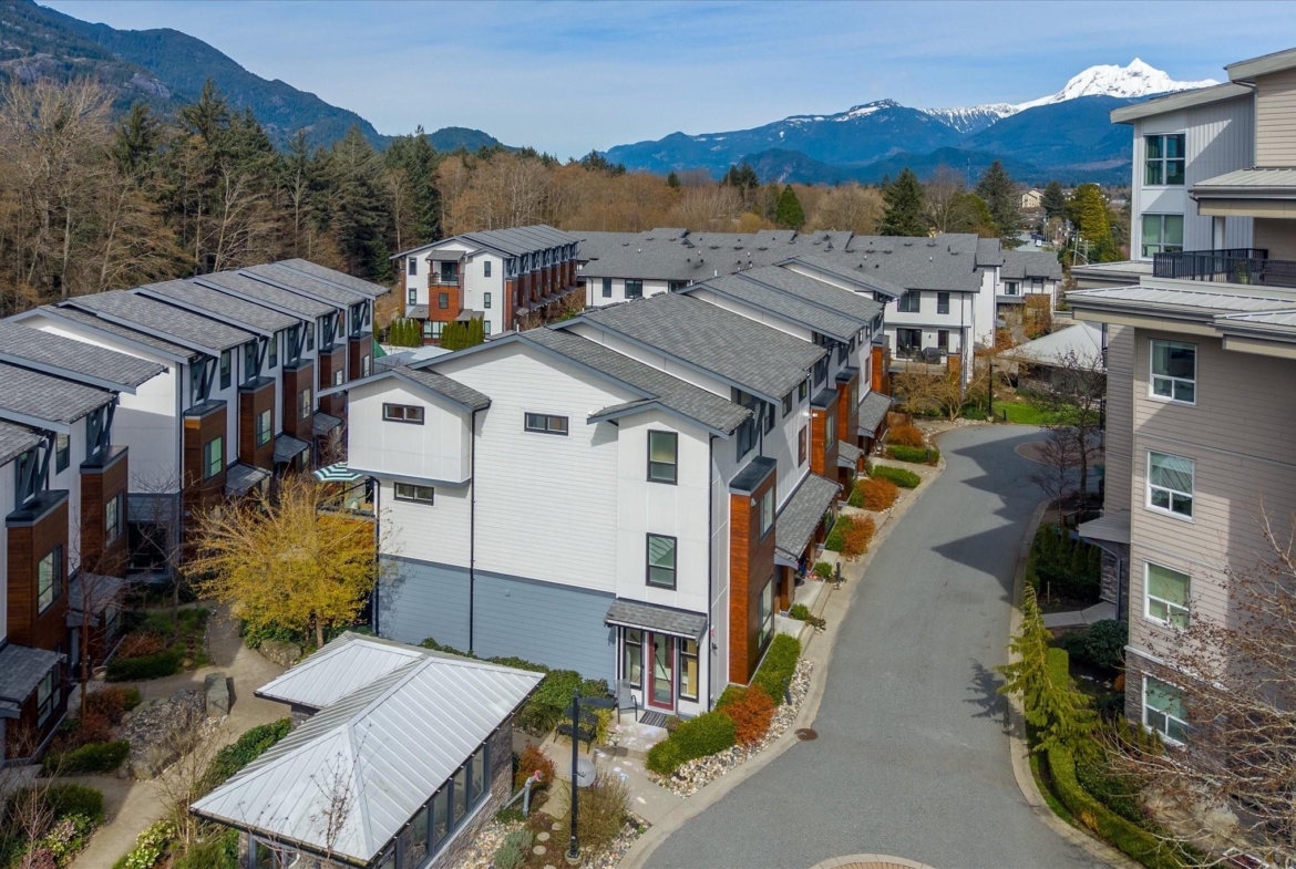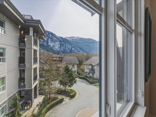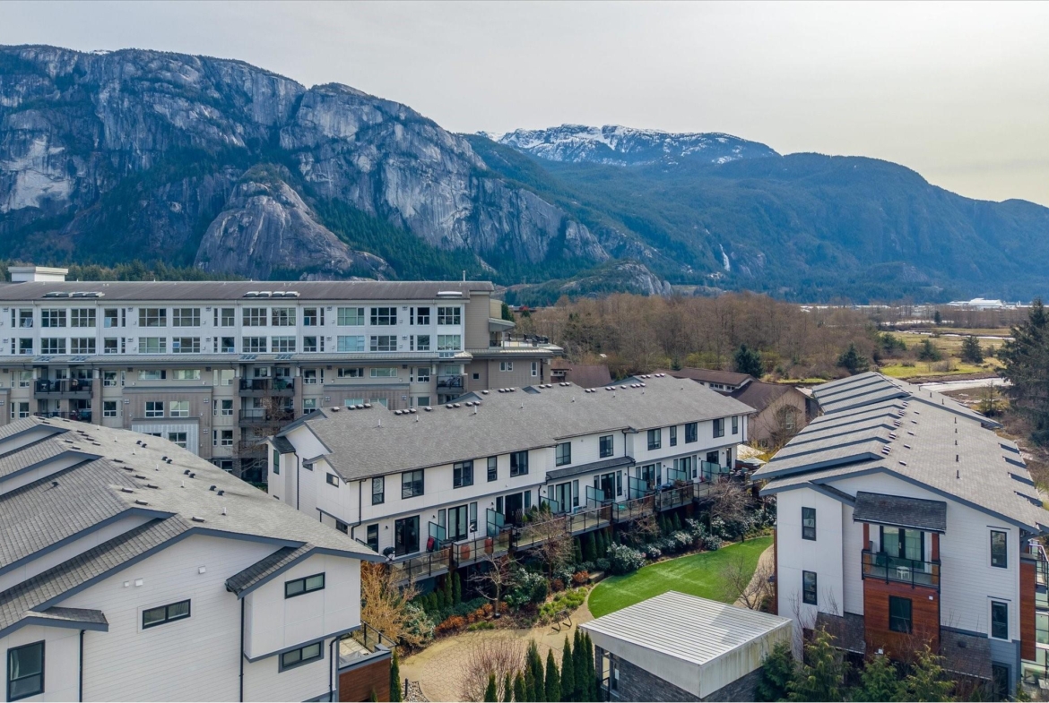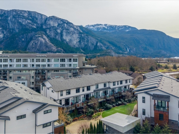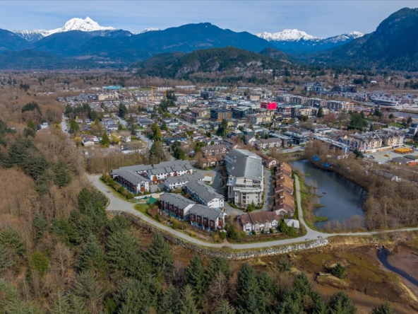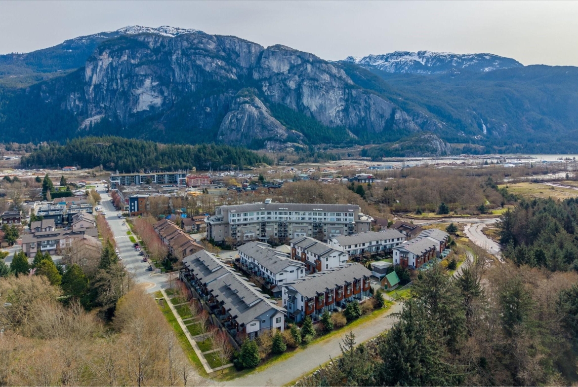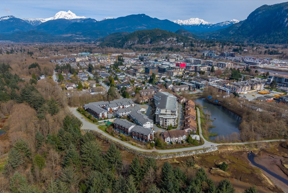 Beautiful bright end-unit at Soleil in a quiet location with green space outlook and views of the Chief from the deck and bedroom. Just steps to the estuary and trails, and only a few blocks to downtown amenities. Spacious sun-filled foyer leads to an open-concept main floor with 9’ ceilings, wide plank laminate flooring, and a southwest-facing sundeck. Functional layout flows from the living area to the kitchen with island, bar seating, stainless appliances, and into a generous dining space. Primary bedroom features a walk-in closet and ensuite. Includes two secured parking stalls and lots of storage. Enjoy easy access to nature right outside your door. Great condition and move-in ready!