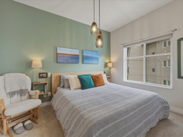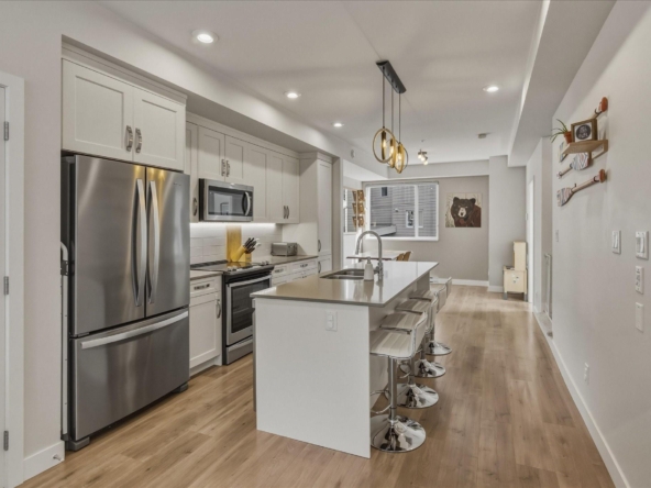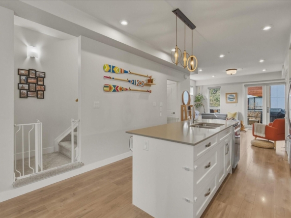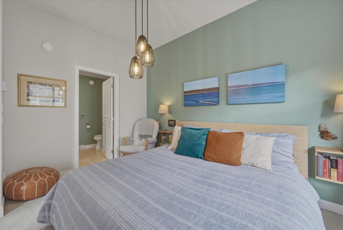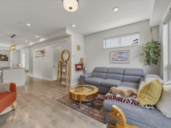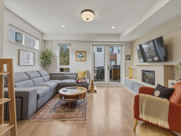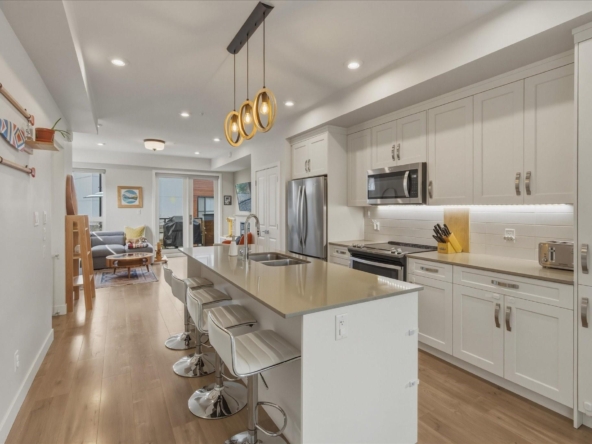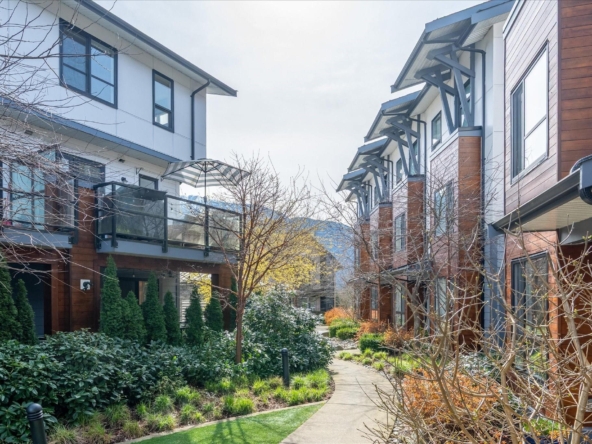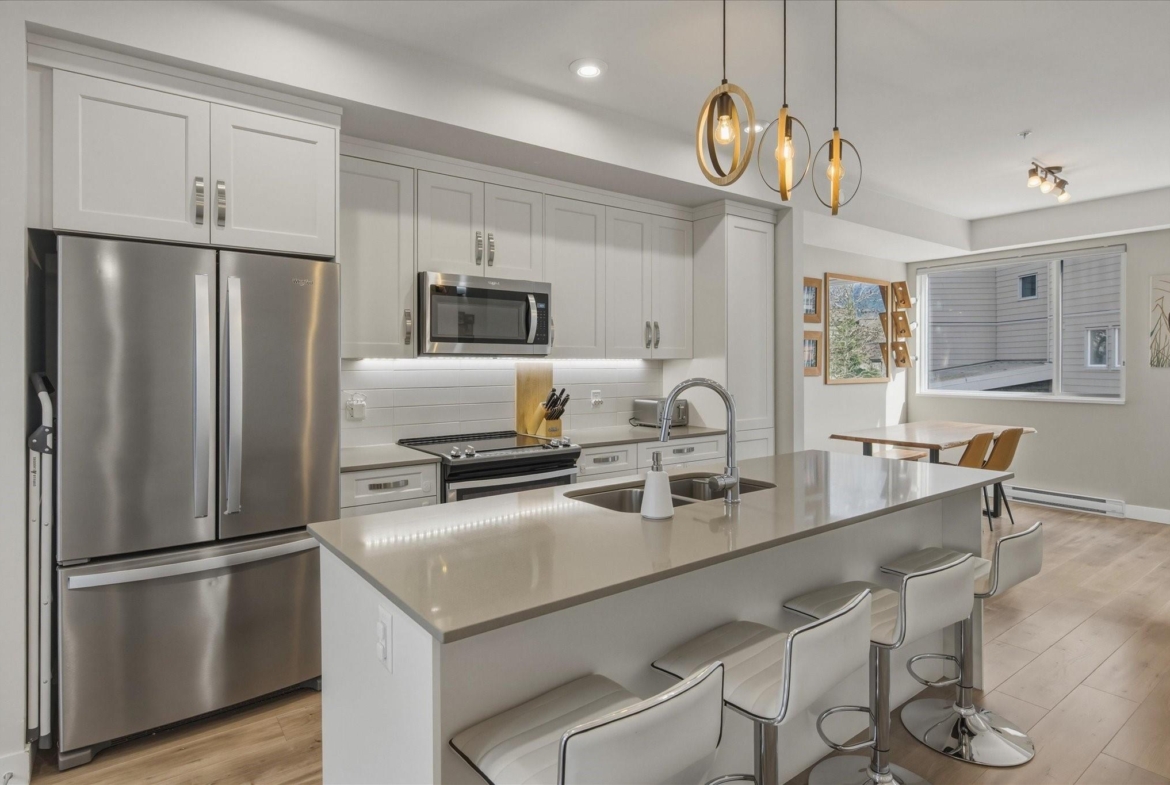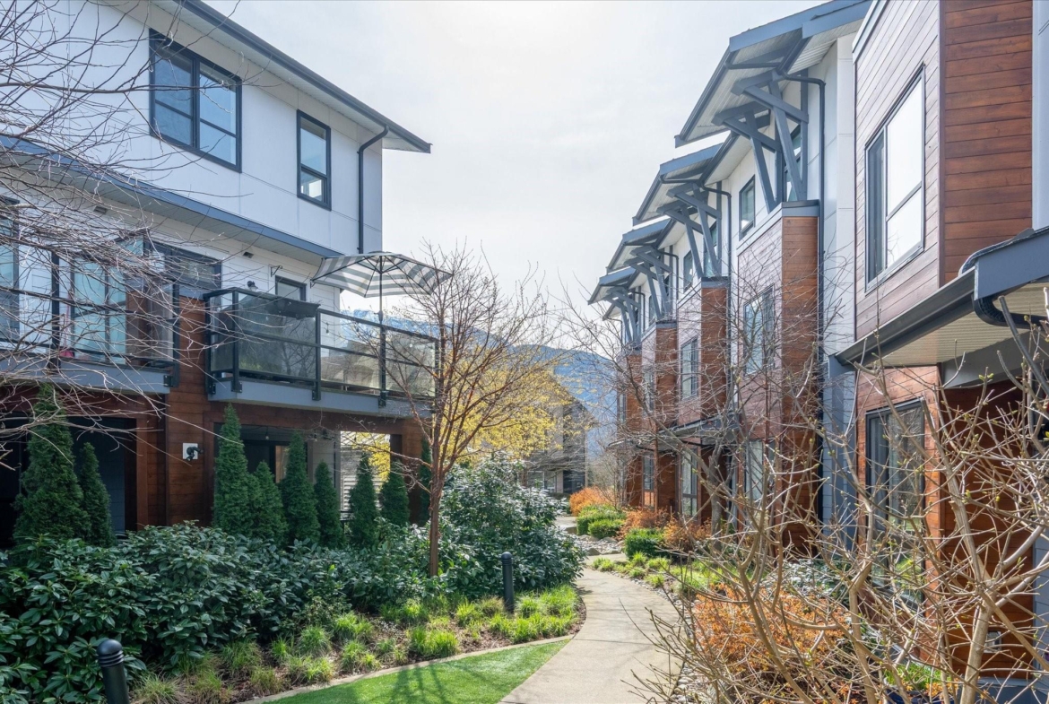 Beautiful bright end-unit at Soleil in a quiet location with green space outlook and views of the Chief from the deck and bedroom. Just steps to the estuary and trails, and only a few blocks to downtown amenities. Spacious sun-filled foyer leads to an open-concept main floor with 9’ ceilings, wide plank laminate flooring, and a southwest-facing sundeck. Functional layout flows from the living area to the kitchen with island, bar seating, stainless appliances, and into a generous dining space. Primary bedroom features a walk-in closet and ensuite. Includes two secured parking stalls and lots of storage. Enjoy easy access to nature right outside your door. Great condition and move-in ready!
