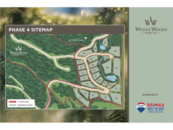 Set within the WedgeWoods community, this expansive 1.927 acre estate lot offers an extraordinary opportunity to create a private mountain retreat. Generous in scale, surrounded by forest, and thoughtfully positioned to capture expansive views, this estate-sized property offers the space, privacy, and sunshine that define luxury mountain living. The zoning allows for a main residence along with an auxiliary building of up to 2,150 sq. ft., ideal for a workshop, studio, guest accommodation, or additional garage space, perfect for storing all the gear that comes with an active lifestyle. Located just 12 minutes from Whistler Village and only minutes from the conveniences of Rainbow’s shops and services, the setting offers a rare balance of peaceful seclusion and effortless access to world-class skiing, golf, and dining. With hiking and biking trails right at your doorstep, every season brings new opportunities to explore the surrounding alpine landscape. Residents also enjoy access to the community amenity building with a fitness room, recreation space, and outdoor tennis and pickleball courts. A spectacular setting to design a legacy mountain home in a sought-after estate neighbourhood.