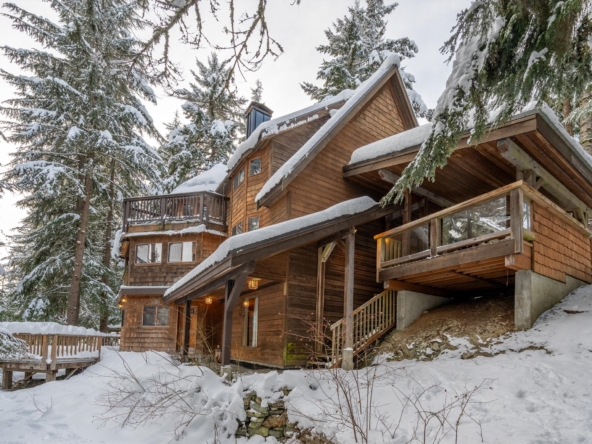 Discover a Whistler chalet full of character and nostalgia, built from the ground up in 1982 on a 9,000 sq. ft. lot and lovingly maintained in the Emerald Estates neighbourhood. Natural elements—brick, stone, and wood—create a warmth and charm that requires significant craftsmanship to reproduce. Enjoy open-plan living featuring a double-sided brick fireplace on the main level, connecting you to a private L-shaped deck surrounded by mature trees, creating a private setting and offering views of Armchair Glacier for an indoor/outdoor living experience. The spacious primary bedroom offers views of Armchair Glacier from the bedroom itself, the private balcony, and the deep soaker tub, providing a space to relax. The lower level offers flexible space for multigenerational living, hosting friends, or a games space for kids, complete with a woodstove and its own natural ambiance. Outdoors, gather around the large stone fireplace for memorable evenings under the stars as you warm your marshmallows for s’mores and hot chocolate evenings. Keep your skis and bikes in the convenient shed by the driveway, ready for effortless grab-and-go mountain adventures. With room to potentially add a garage, space to wire a hot tub to the undercover deck, and a lightly sloped, private yard for kids to play safely, this property offers the potential to add your own touch. A true Whistler haven—peaceful, inviting, and designed for connection, this home invites you to unwind and create countless memories with family and friends.