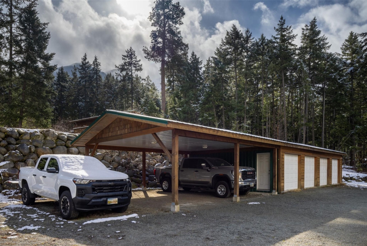 Set on nearly two private acres backing onto Crown land with access toward Spruce Creek and the Haylmore backcountry, this cedar-clad country home offers space, privacy, and a true rural lifestyle. Inside, warm hardwood floors, solid fir doors, and a custom kitchen create a welcoming place to gather. Efficient heat pump provide air conditioning and propane furnace while heated bathroom floors add everyday comfort. Outside, a fully irrigated field suitable for horses is framed by rock retaining walls and open space. Two large buildings one of the buildings has heat and air conditioning with nine garage doors plus a covered carport with three additional parking spaces provide exceptional room for vehicles, equipment, or recreational gear.