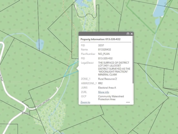 Escape to nature on this breathtaking 2.04-acre Douglas Fir treed lot, known as the Moonlight Fraction. Nestled between Bralorne and Gold Bridge, this serene property features the beautiful Fergusson Creek flowing through, creating a picturesque setting for your dream retreat. Enjoy easy access to the great outdoors, with both McDonald Lake and Sucker Lake located just 1.5km away, easily accessible via maintained walking trails connected to the property. Hydro hook up is in place, and current owners have already started clearing a build site for a cabin, so whether you’re looking to build your dream home, a cozy cabin, or simply want a private spot to relax and unwind, this property offers endless possibilities.
